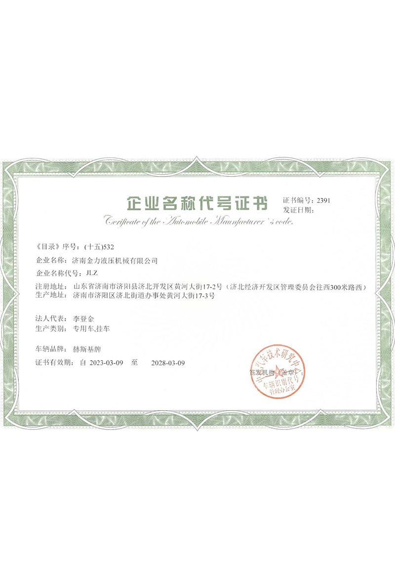 企業(yè)名稱代號(hào)證書