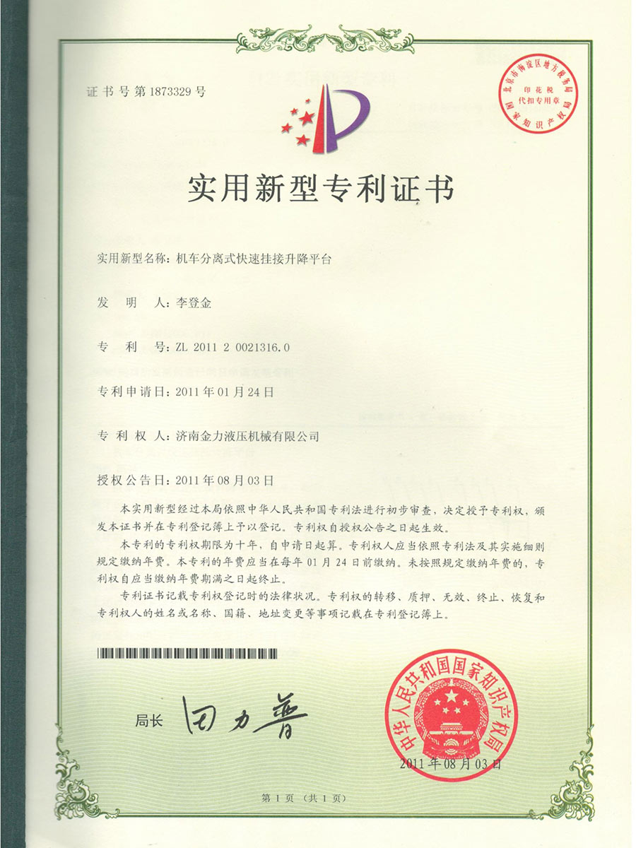 機(jī)車分離式快速掛接升降 平臺(tái)
