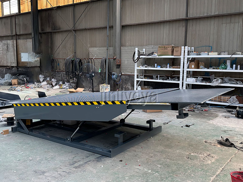 主體結(jié)構(gòu):通常由高強(qiáng)度鋼材制成,主要包括一個(gè)可升降的平臺(tái)和一個(gè)與貨車(chē)車(chē)廂搭接的過(guò)橋。平臺(tái)部分用于承載叉車(chē)及貨物,而過(guò)橋則是連接平臺(tái)與車(chē)廂的通道。